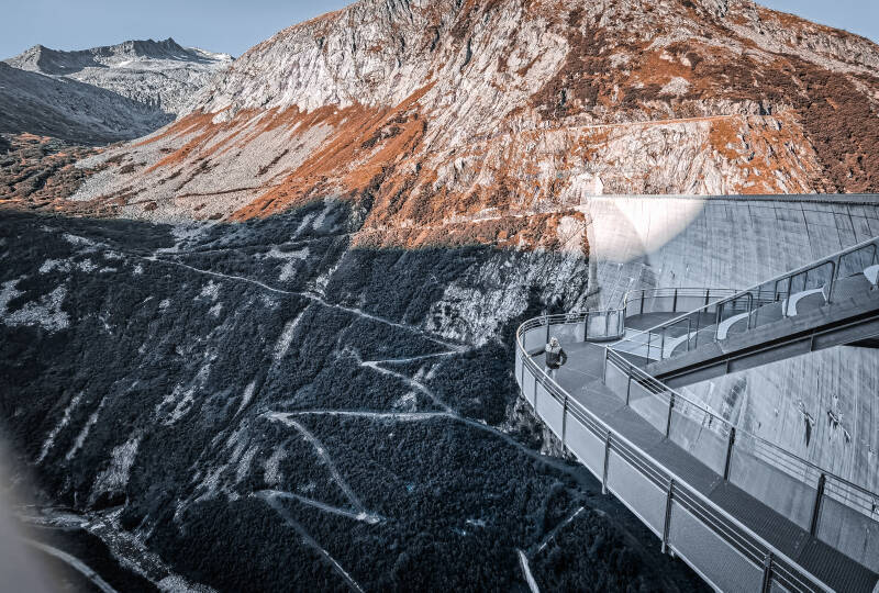 Die Straße führt über mehrere natürlich in die Felswand gehauene Felstunnel und über einige kleine Wasserfälle durch. Die Höhe, auf der sich der Damm befindet, beträgt 1902 Meter.