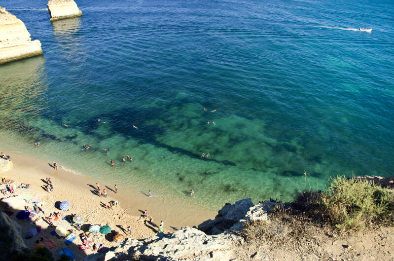An der Küste der gesamten Algarve gibt es viele Arten von Stränden, die einander ähneln. Aber ich empfehle auf jeden Fall, hierherzukommen. Die Felsbrocken stehen direkt am Sand und werden vom Wasser umspült.