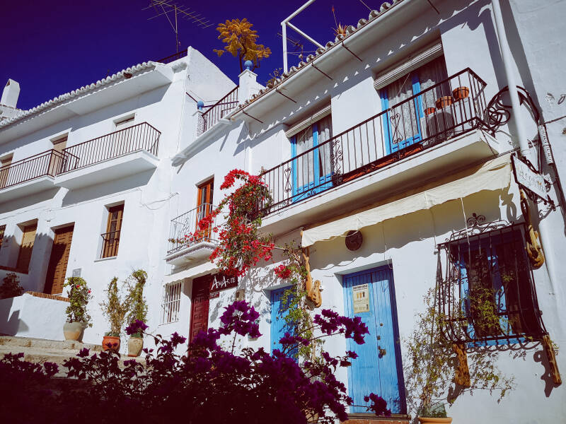 Super Ort, ca. 30 km außerhalb Malagas. Alles in Weiß, viele bunte Details, Blumen und Keramik. Autofrei, ruhig und ein Genuss zu entspannen und zu relaxen. Es hat viele kleine Geschäfte und Läden. Gehen Sie unbedingt hinein, so entdecken Sie viele Terrassenrestaurants, Cafés in einem Fachgeschäft, wo Sie dies nie vermuten würden.